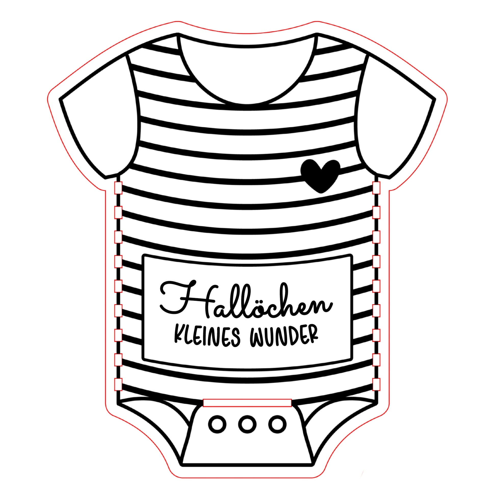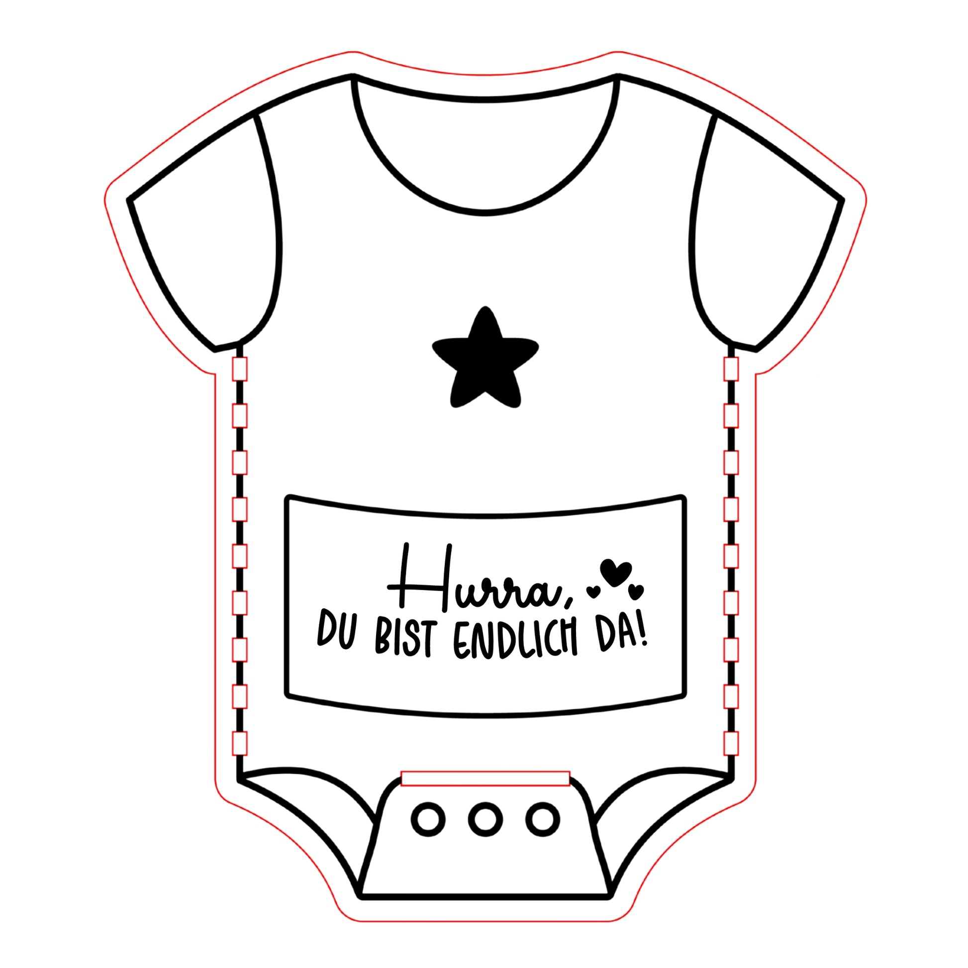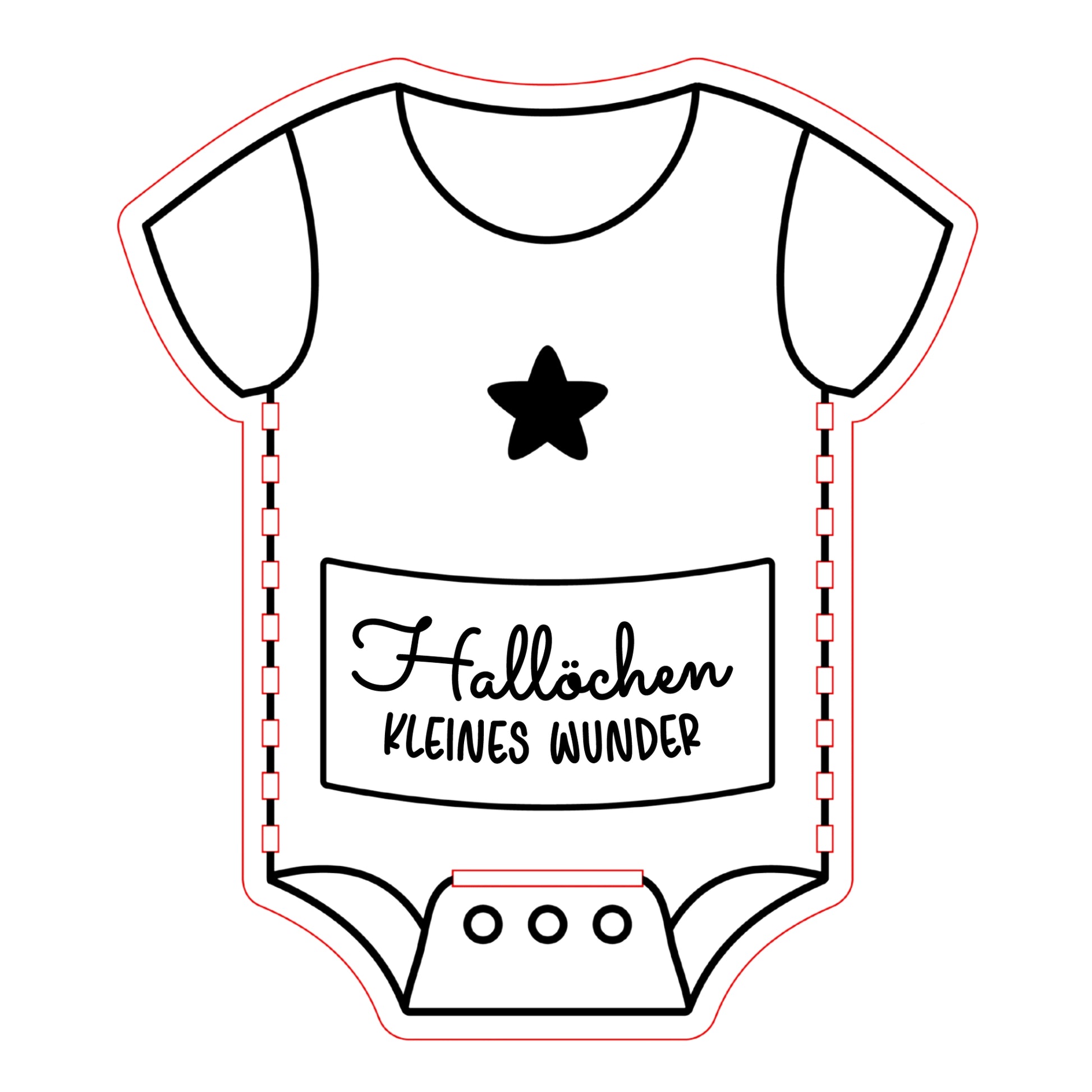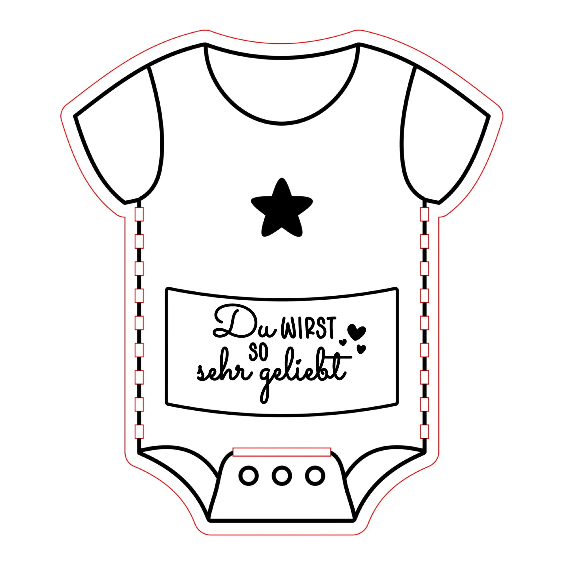 Dieser handgefertigte Baby-Body aus Holz ist ein bezauberndes Geschenk zur Geburt oder Babyparty. Aus 3 mm naturbelassenem Holz gelasert, detailreich graviert (z. B. Schnuller, Rassel, Herz) und mit vorgefertigten Sprüchen zur Auswahl – ganz ohne Personalisierung. Der Innenraum bietet Platz für Geldgeschenke, Gutscheine oder kleine Erinnerungen.