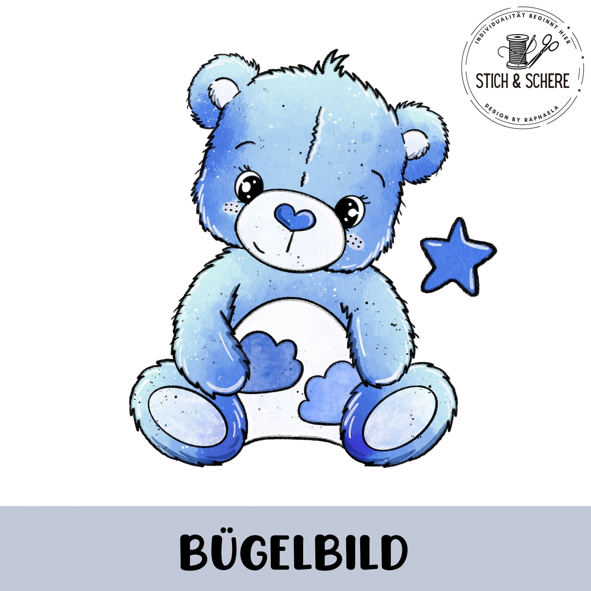 Bügelbild "Regenbogenbärchen" blau zum Aufbügeln – für Kinder, Damen & Herren