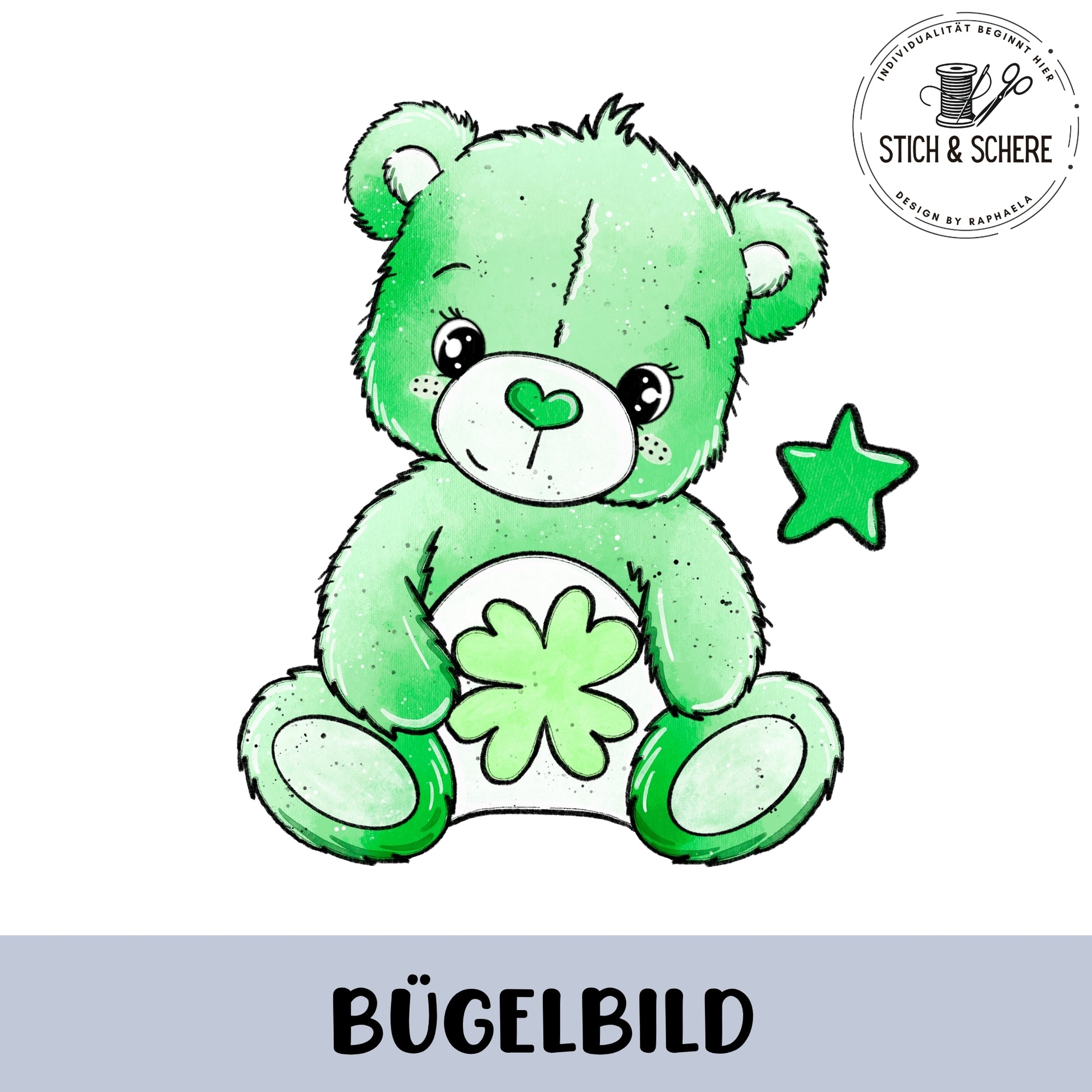 Bügelbild "Regenbogenbärchen" grün zum Aufbügeln – für Kinder, Damen & Herren