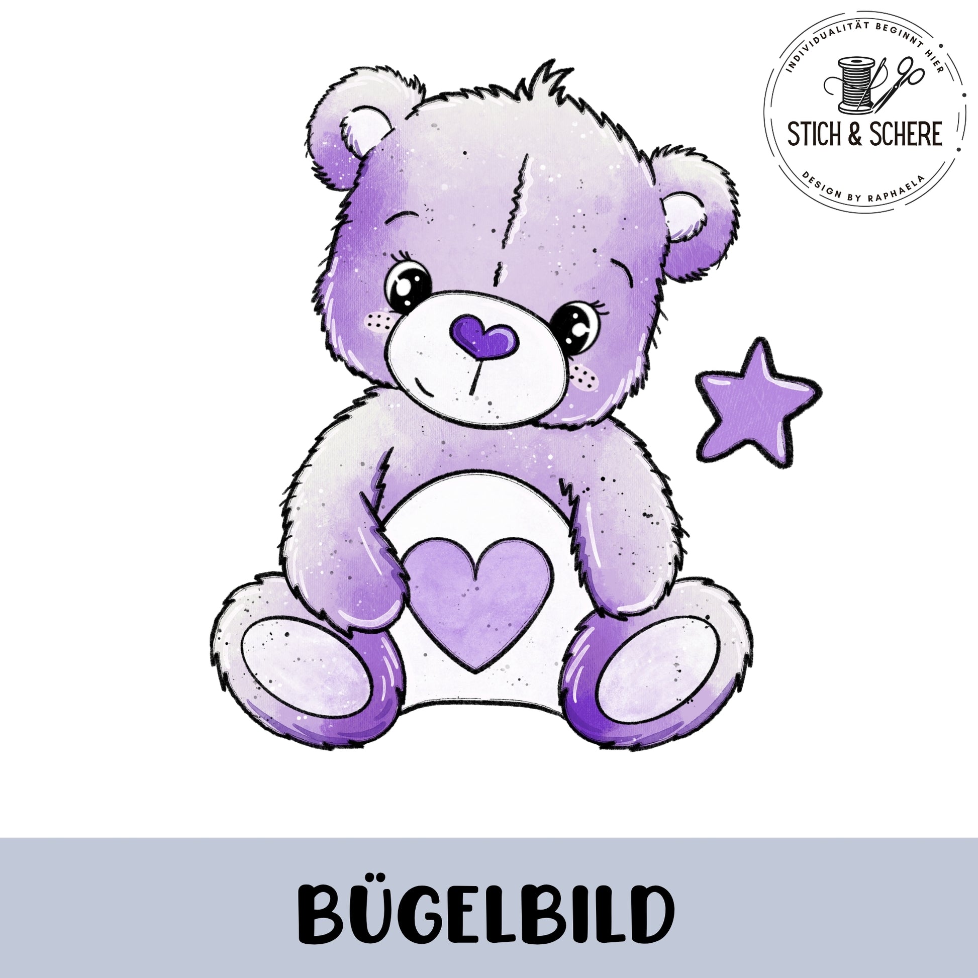 Bügelbild "Regenbogenbärchen" lila zum Aufbügeln – für Kinder, Damen & Herren