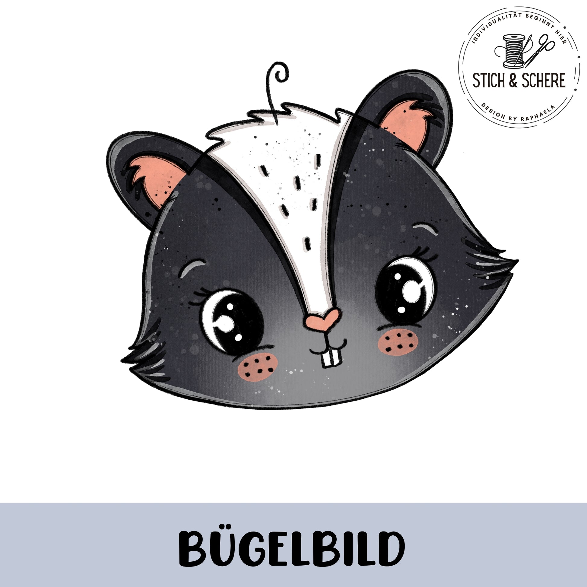 Bügelbild "Stinktierkopf Stunk" zum Aufbügeln – für Kinder, Damen & Herren