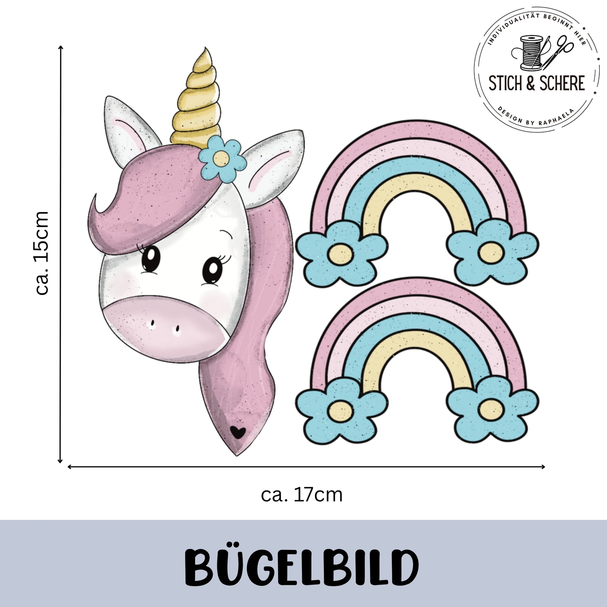 Bügelbild „Unicorn-Regenbogen“ - Set zum Aufbügeln – für Kinder, Damen & Herren
