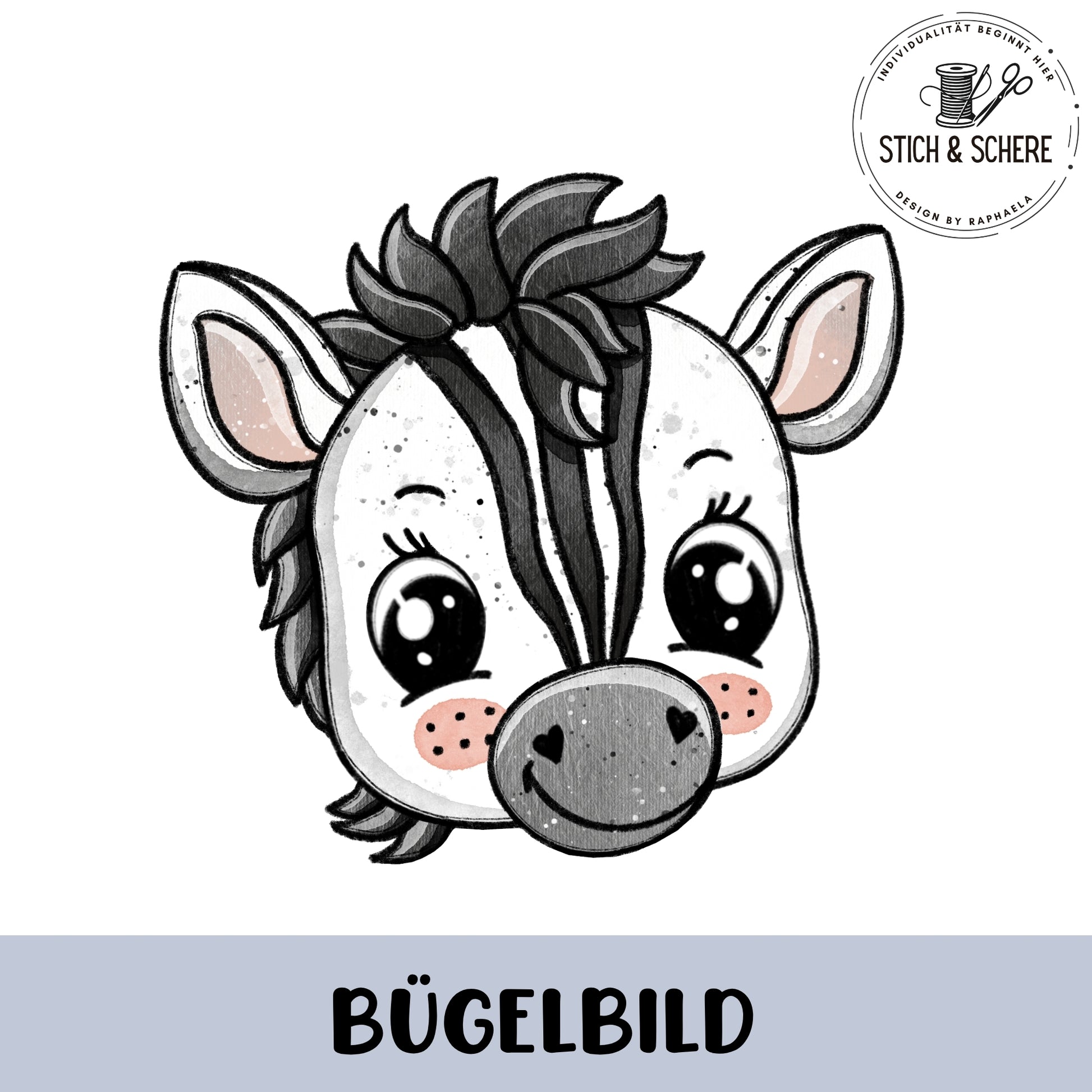 Bügelbild "Zebrakopf Zip" zum Aufbügeln – für Kinder, Damen & Herren