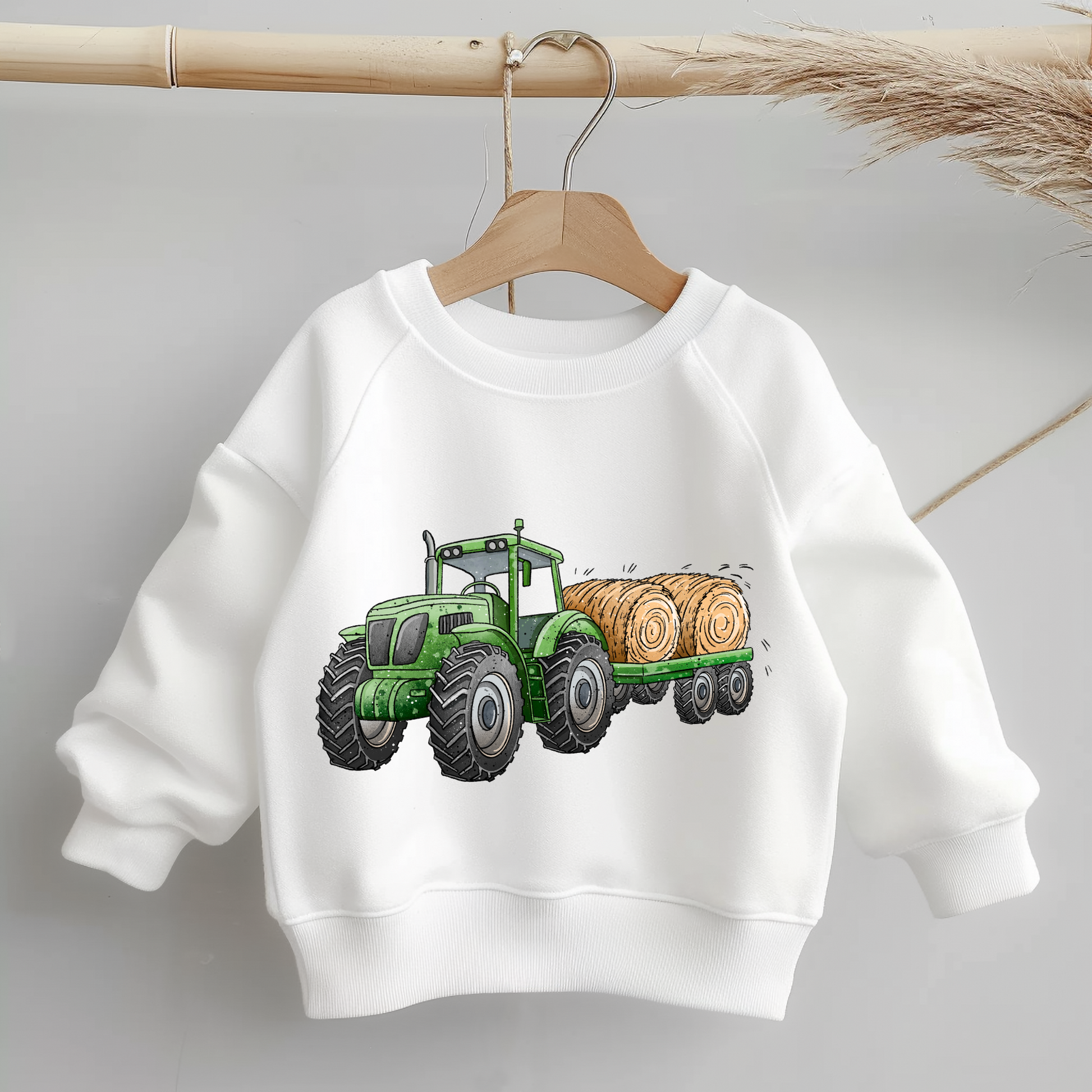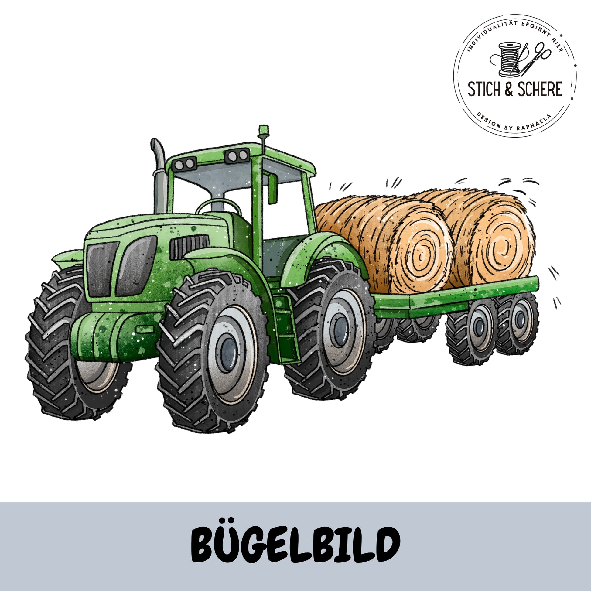 Bügelbild "Trecker mit Anhänger" grün zum Aufbügeln – für Kinder, Damen & Herren