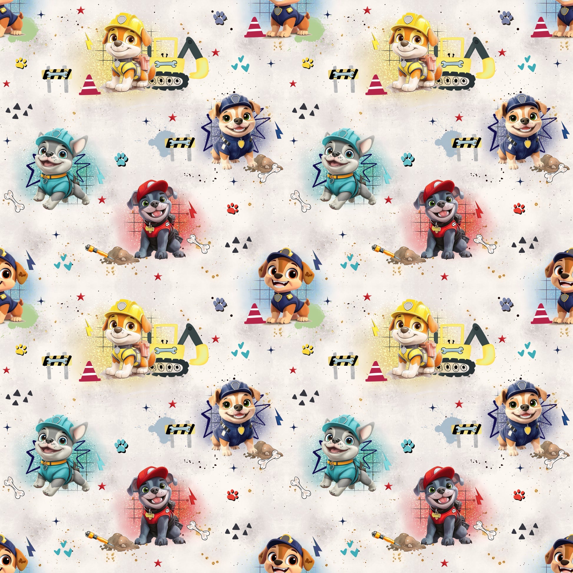 Dieser liebevoll illustrierte Jersey-Stoff zeigt mutige Hunde in Bauarbeiter-Outfits, umgeben von Baggern, Werkzeugen und typischen Baustellen-Elementen. Perfekt für kleine Baufans mit einer großen Liebe zu Tieren!