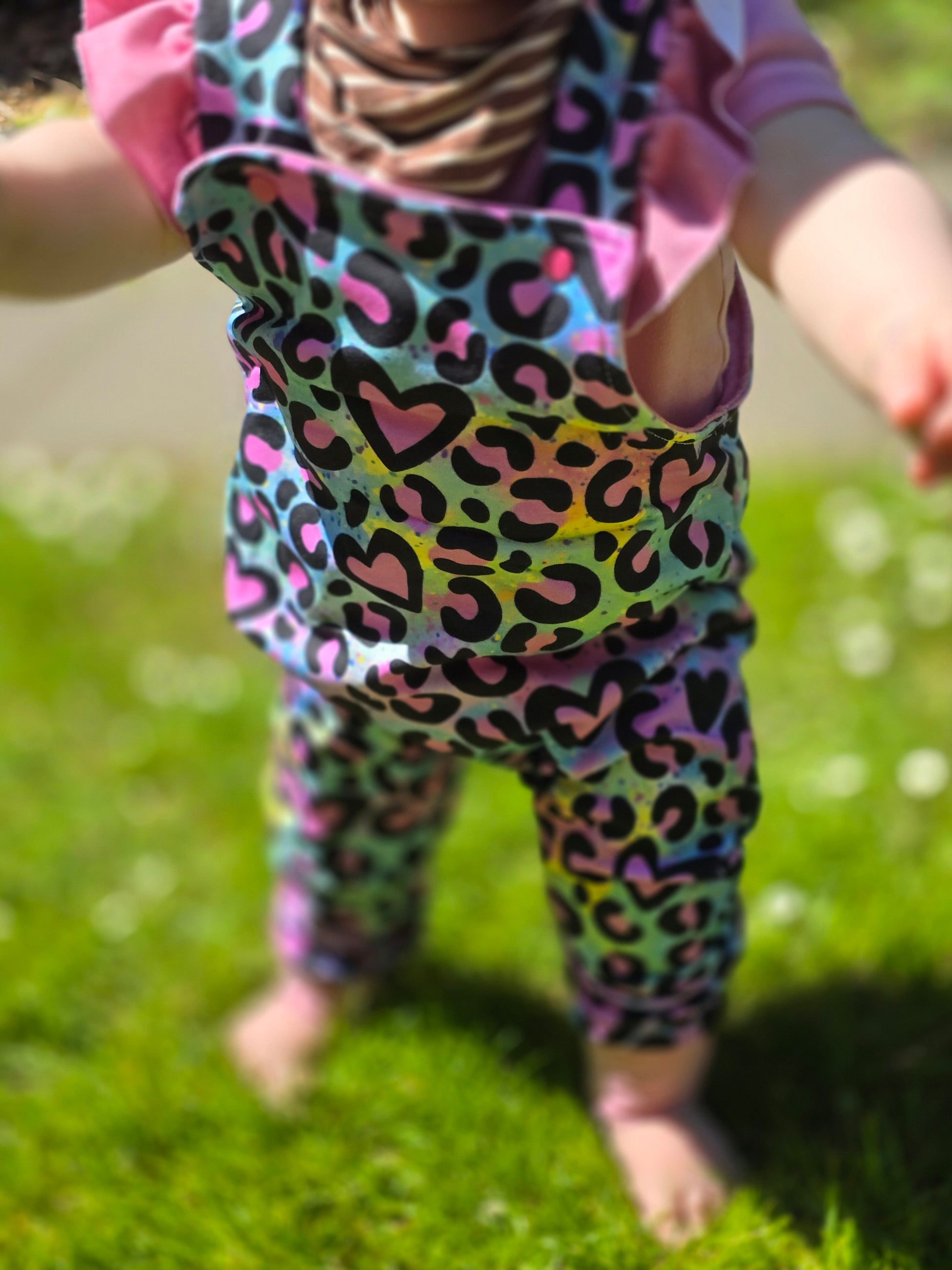 Dieses einzigartige Stoffdesign kombiniert einen trendigen Leoprint mit Herzen auf einem farbenfrohen Regenbogen-Hintergrund. Perfekt für alle, die leuchtende Farben lieben und ein Statement setzen möchten!