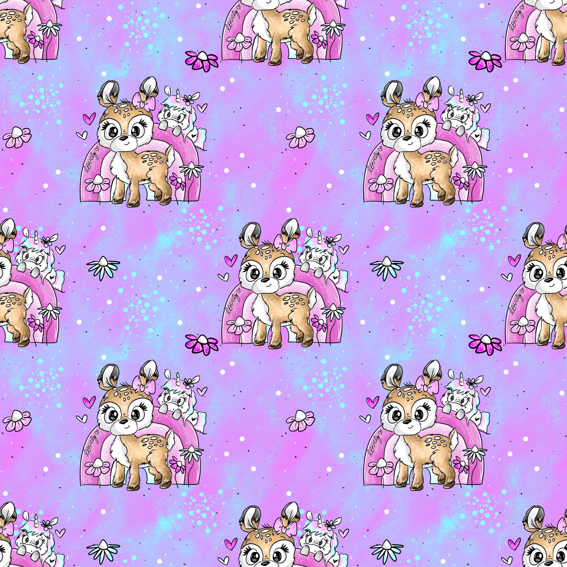 🌈 "Over the Rainbow" – Verspielter Kinderstoff mit süßem Reh-Design 🦌💜