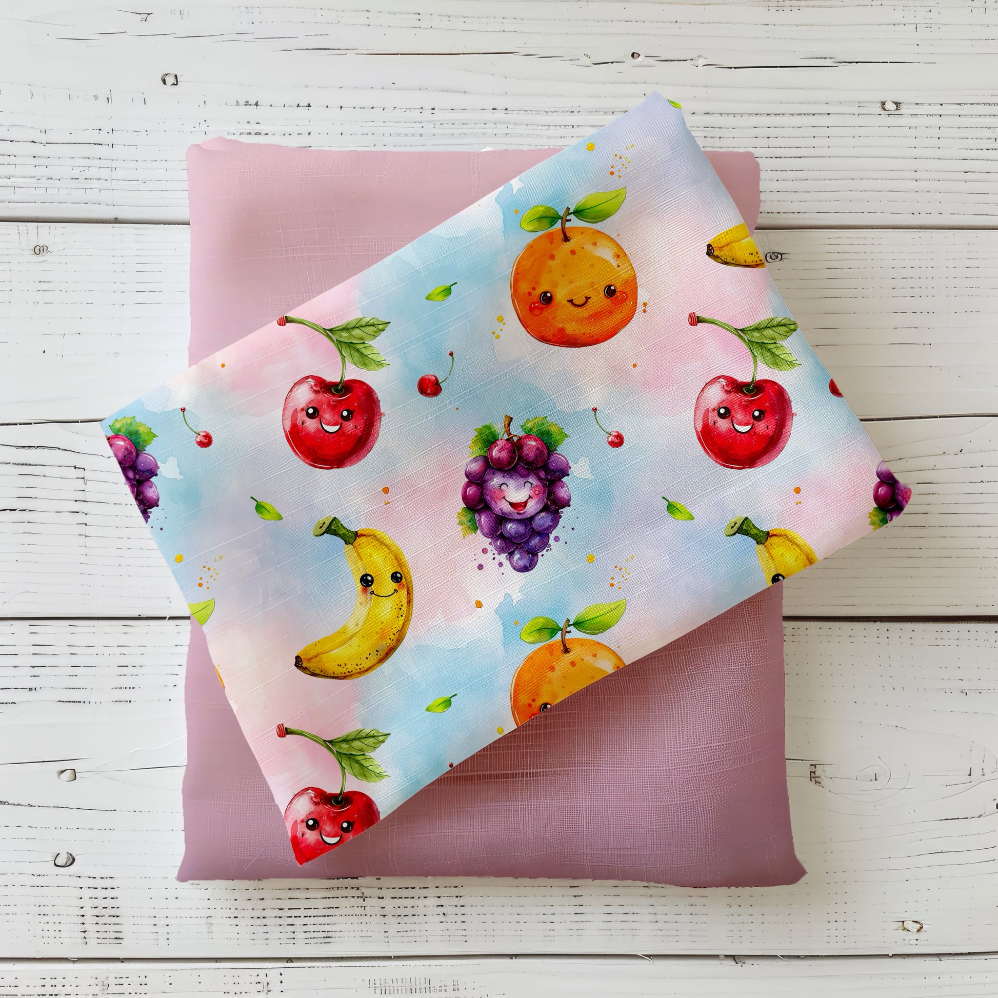Das Design „Süße Früchte“ bringt Farbe in deine Nähideen! Mit fröhlichen Früchten mit lachenden Gesichtern auf einem zarten Aquarell-Hintergrund wird jedes Nähprojekt zum echten Hingucker. 🍓🍍