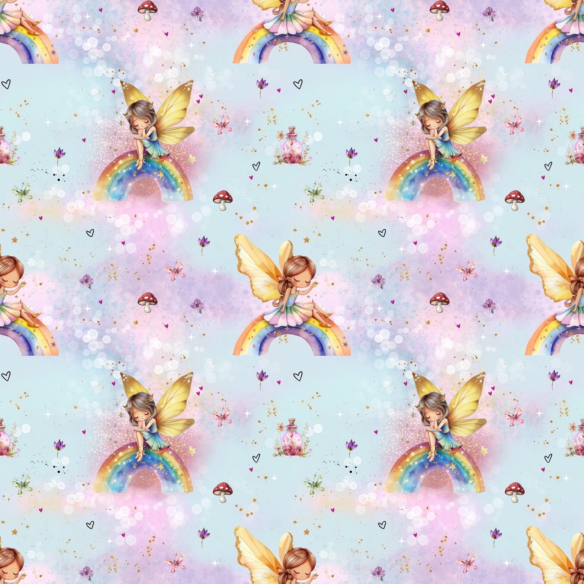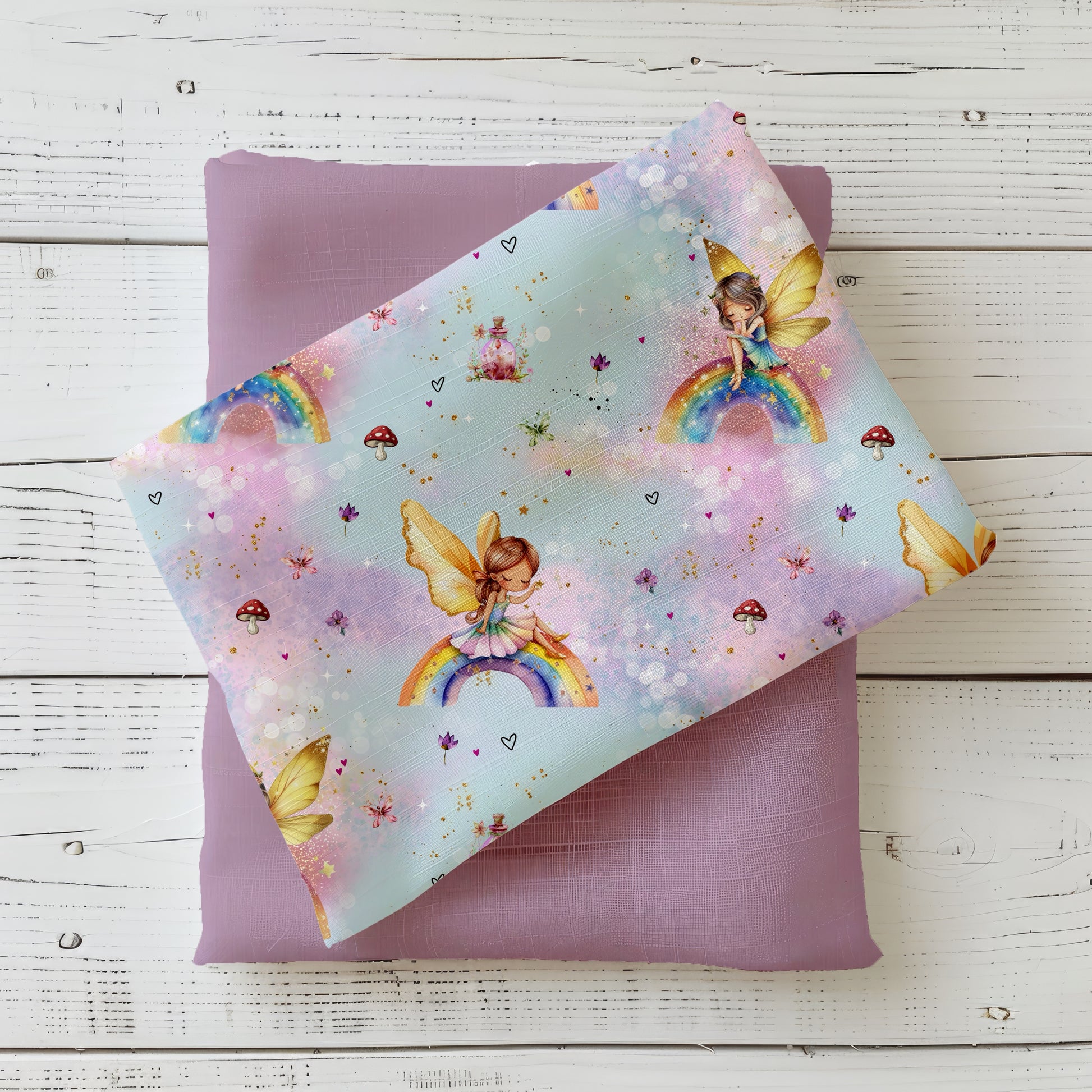 Tauche ein in eine märchenhafte Welt mit unserem „Feenstoff in Blau“! ✨ Das liebevoll gestaltete Design zeigt süße kleine Feen 🧚♀️, schimmernde Regenbögen 🌈 und viele verspielte Details – ideal für fantasievolle Nähprojekte.